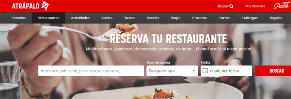 Atrápalo. Esta web de la que ya os hablamos en un post anterior sobre las mejores webs de descuentos, sorteos y cupones también nos ofrece una amplia oferta en restaurantes con exquisitos descuentos y cupones para disfrutar de una buena experiencia gastronómica. Podemos reservar desde la web y conocer las opiniones de la gente que ya ha estado en el restaurante.